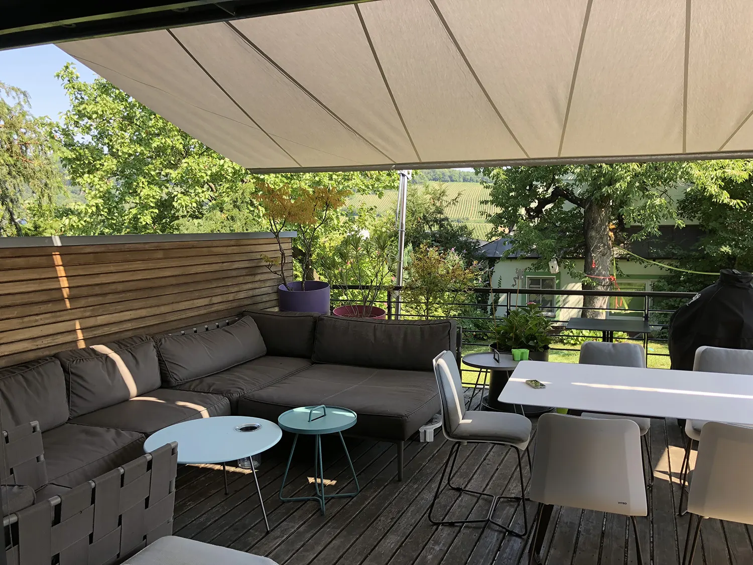 La tenda da sole unilaterale SunSquare® con taglio vela rettangolare.