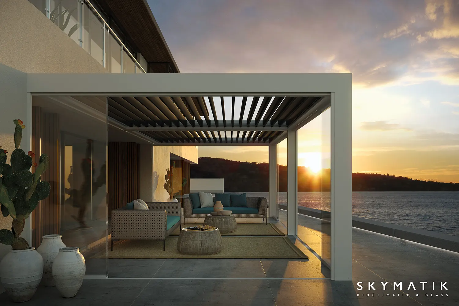 Superb, top di gamma, è sinonimo di tecnologia al servizio del comfort, la ventilazione della copertura e la protezione delle tende integrate nella struttura fanno si che i vostri spazi all’aperto si trasformino con eleganza e robustezza in ambientazioni armoniose vivibili a 360° per molti mesi all’anno.